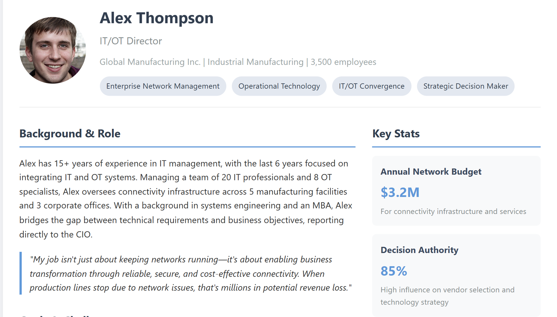 • IT/OT leaders whose budgets cover network connectivity OPEX
